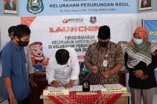Rangkaian acara launching Kelurahan APU diisi juga dengan penandatangan Nota Kesepahaman Bersama antara Ketua Bawaslu Kota Tegal dengan Lurah Pesurungan Kidul, Kecamatan Tegal Barat Kota Tegal. Pembentukan kelurahan anti politik uang ini, diharapkan dapat menjadi pondasi atau benteng dalam menolak dan mencegah terjadinya praktik politik uang pada pemilu, serta dapat memperkokoh demokrasi yang bersih dan bermartabat di Indonesia.