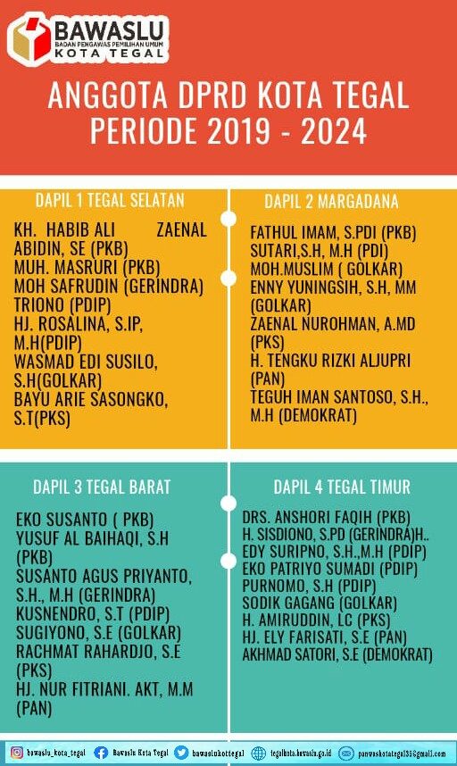 Berikut nama-nama anggota DPRD Kota Tegal terpilih masa keanggotaan tahun 2019-2024, sebagai berikut: