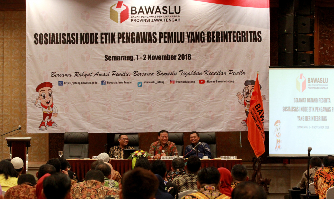 Semarang, Badan Pengawas Pemilu - Bawaslu sebagai penyelenggara pemilu berkewajiban menjaga etika dan kehormatan lembaga. Menurut Ketua Bawaslu, Abhan, semakin besar kewenangan Bawaslu akan semakin besar pula potensi ketidakpuasan pihak-pihak yang berkepentingan terhadap putusan Bawaslu. Ketidakpuasan ini bisa mendorong mereka untuk melaporkan Bawaslu ke Dewan Kehormatan Penyelenggara Pemilu (DKPP).