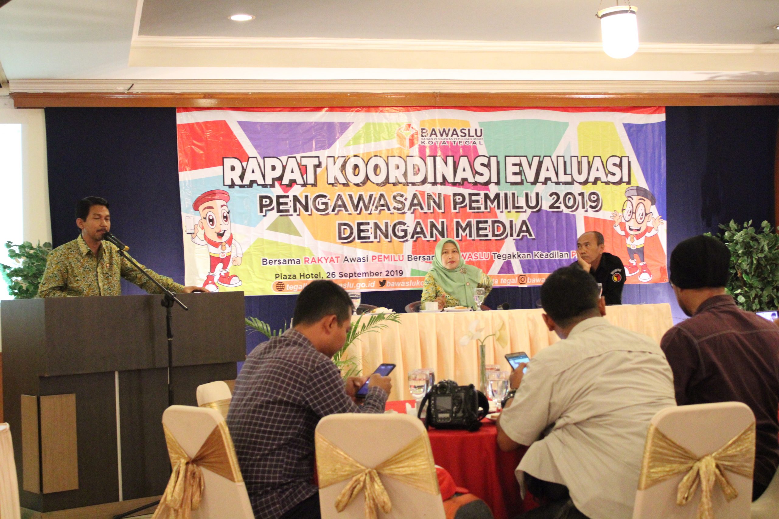 Tegal,Bawaslu Kota Tegal – Untuk mengeratkan hubungan Bawaslu Kota Tegal dengan media, Bawaslu Kota Tegal menggelar Rapat Koordinasi (Rakor) Evaluasi Pengawasan Pemilu 2019 di Governer Room Plaza Hotel (26/9).