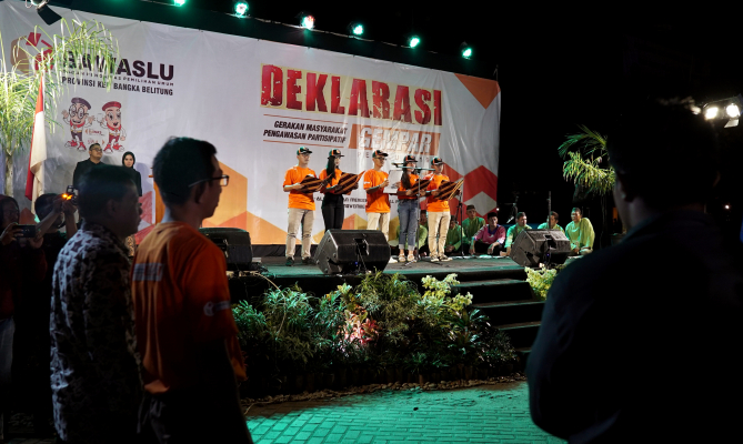 Pangkal Pinang, Badan Pengawas Pemilu - Untuk mendorong kesadaran masyarakat terhadap pengawasan penyelenggaraan Pemilu 2019 mendatang, Bawaslu Bangka Belitung bersama lebih 1000 relawan mendeklarasikan Gerakan Masyarakat Pengawasan Partisipatif (Gempar) Pemilu 2019 di Kota Pangkal Pinang, Provinsi Kepulauan Bangka Belitung, Sabtu (3/11/2018) malam. Mayoritas relawan Gempar merupakan pemilih pemula.
