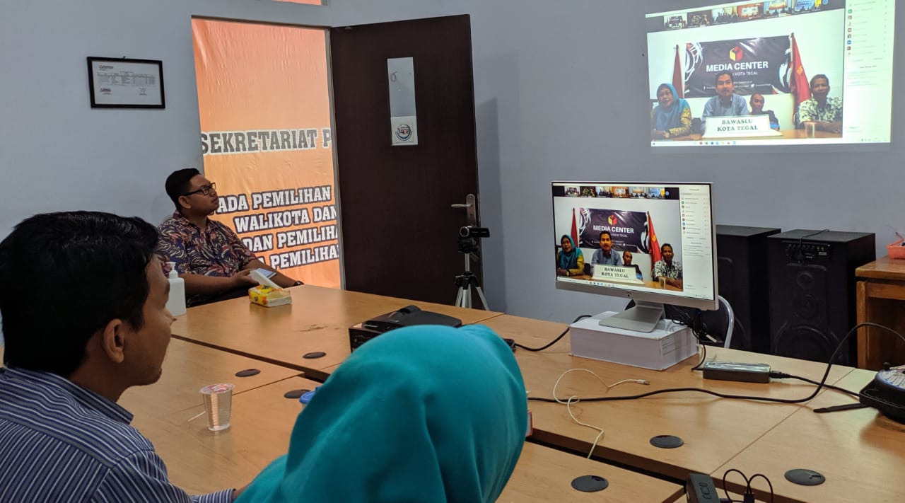 Ketua dan Anggota Bawaslu Kota Tegal dalam mengikuti Vidcon