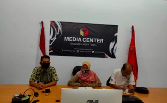 conference di ruang media center Bawaslu Kota Tegal, Senin (13/04/2020).