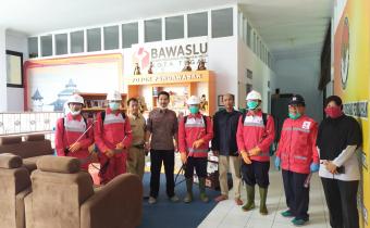 Penyemprotan disinfektan di Kantor Bawaslu Kota Tegal ini dilakukan oleh Palang