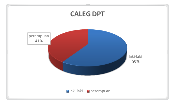 326 Caleg yang ditetapkan, keterwakilan perempuan sebesar 41%. Oleh masing-masing Partai Peserta Pemilu sudah terwakili sesuai ketentuan perundang-undangan, dari 326 caleg terdapat 5 caleg yang berstatus mantan terpidana lainnya seperti tindak pidana pembunuhan, menyalhgunakan narkotiba golongan 1