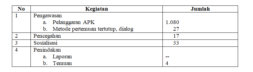 Secara ringkas pengawasan periode Januari – 31 Desember 2018 sebagai berikut